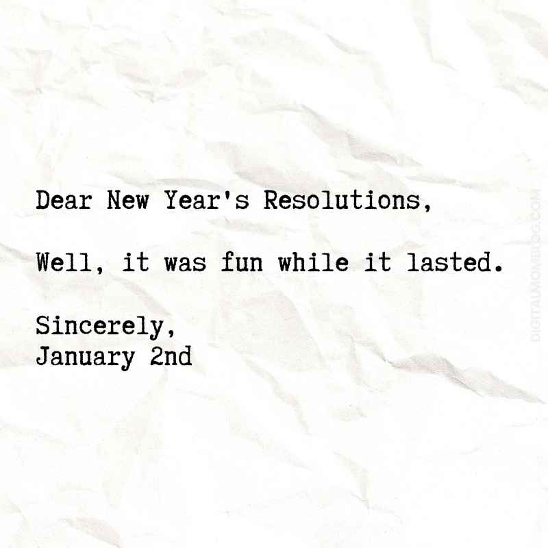 New Year’s Resolutions are for suckers. I try to never make any because about six days after I’ve committed myself to a life changing agenda I’m already abandoning ship on the U.S.S. Pledge to a Better Me.