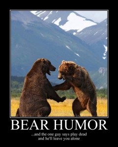 In fact, she added, “Just the other day a bear opened my kitchen window, got an ox tail out my freezer, unwrapped it, not making a mess at all, and then left through the front door. I think the bear may have even gotten into my recliner because when I got home I noticed the seat seemed a little greasy and after that I could never find my TV clicker.