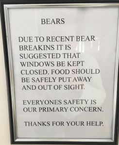 All this is why when my family and I checked into our Lake Tahoe accommodations we were greeted with a sign that began with “Due to recent bear break-ins…” Say what? I imm