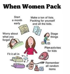 Meanwhile, my husband would throw some underwear, a pair of jeans and couple of shirts into a suitcase and ponder why it was, one, “taking me so long to pack?” And two, why was I complaining so much about it? Some days it’s a wonder that man is still alive. One year, I did throw a pair of shoes at him. They were kids’ Sesame Street flip-flops, so he got off easy.