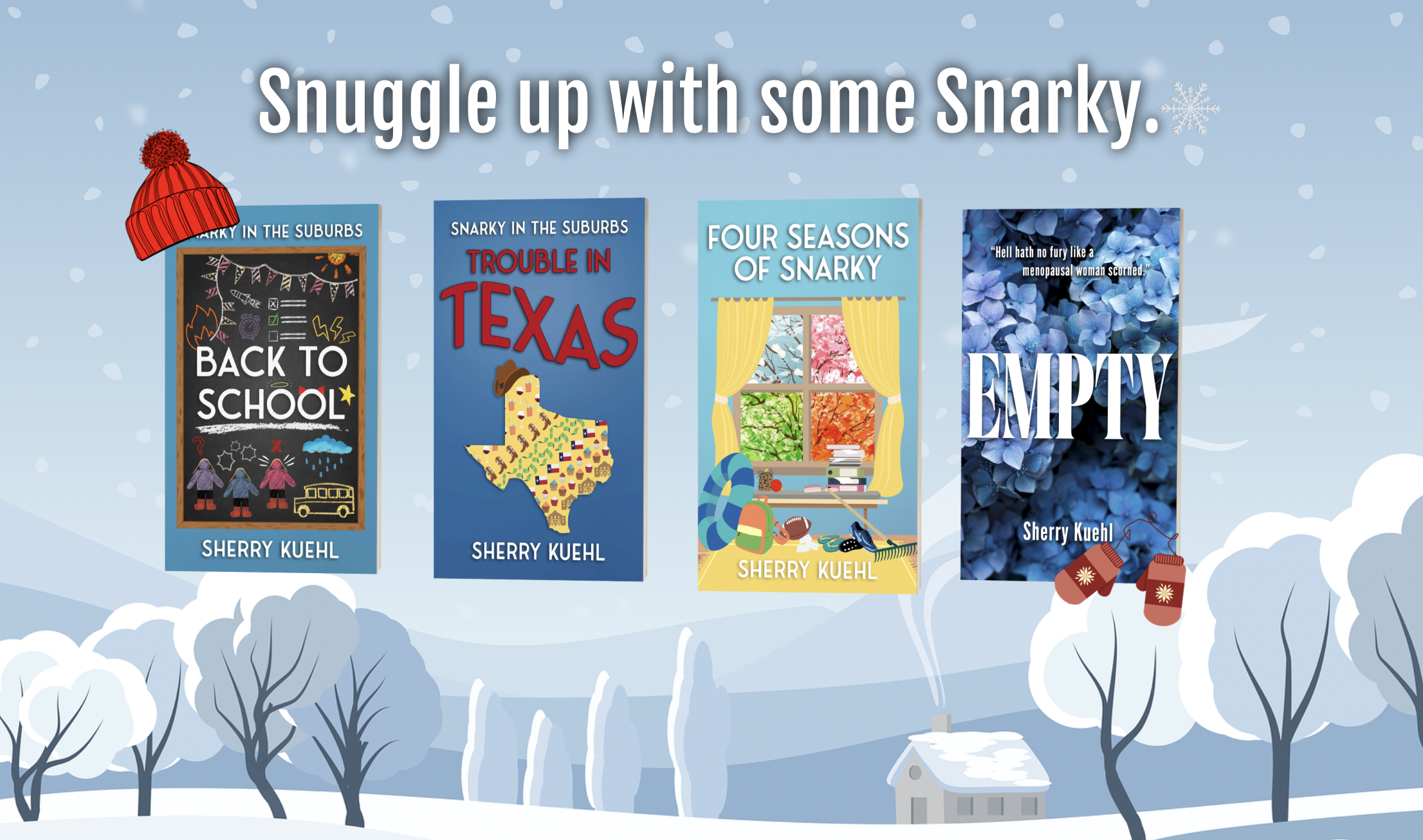 There’s Empty a “laugh till you cry” menopausal revenge adventure. Back to School is a hysterical read for any mom whose experienced elementary school parent drama. Trouble in Texas is a tall tale of what happens when a daughter lets her septuagenarian mom enlist her in a wild scheme that could end up with both of them in jail. And Four Seasons of Snarky is full of short stories (perfect for the person who doesn’t have much time to read) that feature tales of suburban revenge.