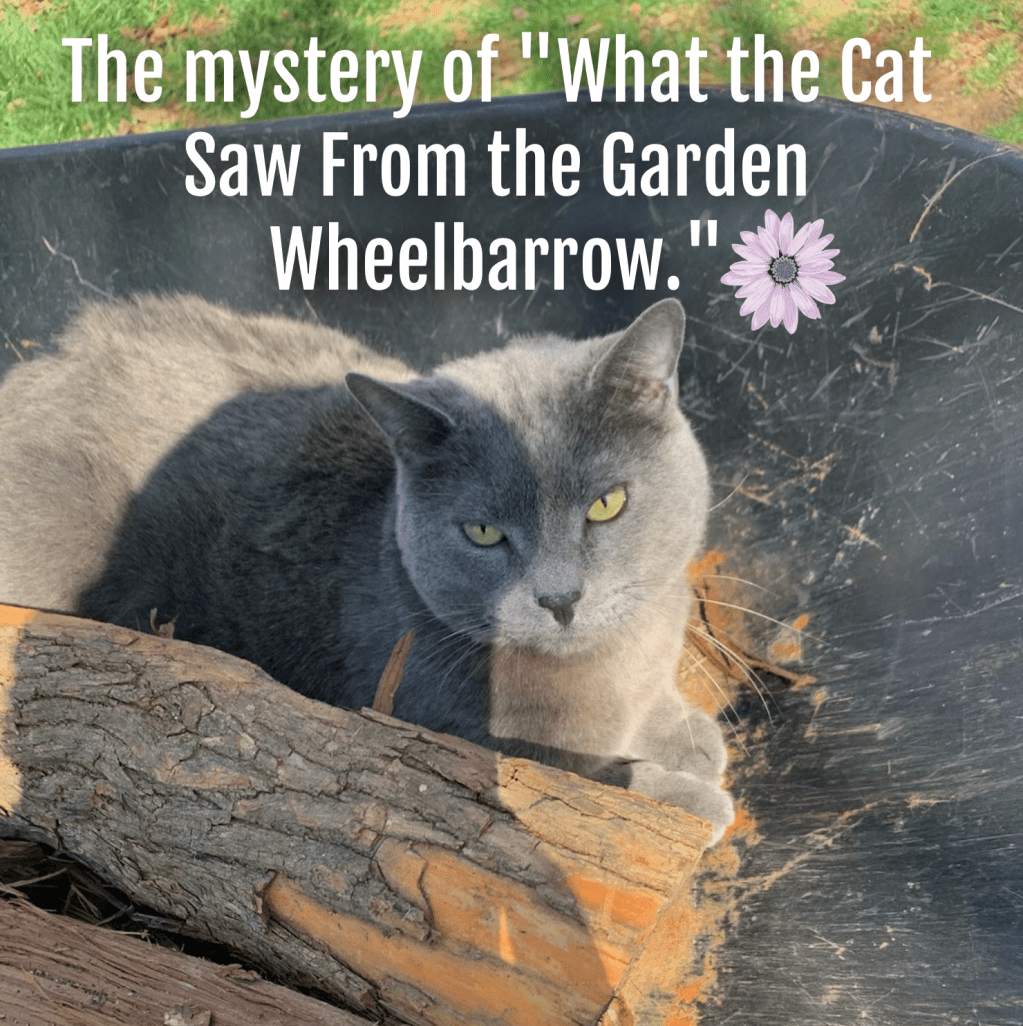 Our two dogs sensing that the sniping at each other was going to escalate to the “neighbors outside in their yards might hear us bickering level” sought refuge in the house. Our cat, though, stayed right in the thick of it. Actually, getting a front row seat by perching himself in a wheelbarrow and dare I say giving us flagrant side-eye the entire time.