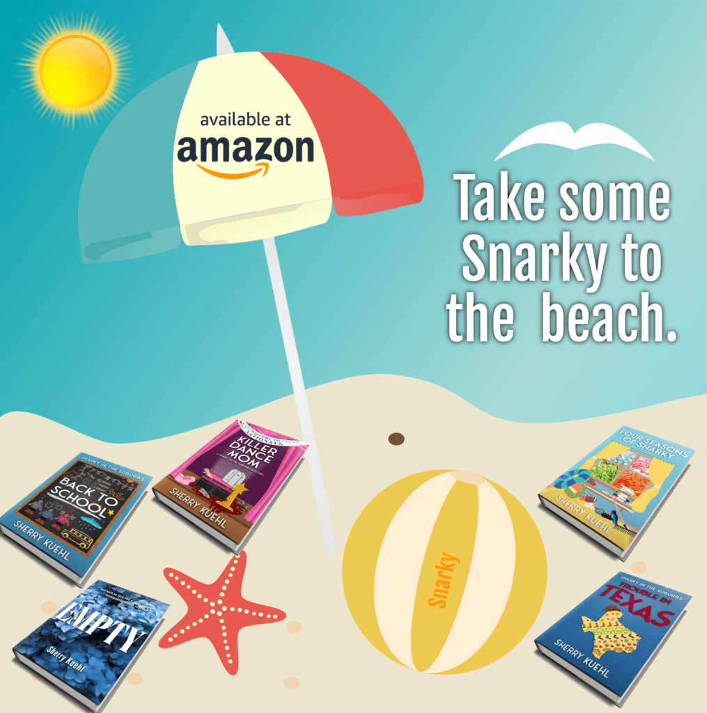 Lord have mercy that was a lot. Let’s quickly move on to something that’s 100 percent a delight – my books. 😎 From Empty a “laugh till you cry” menopausal revenge adventure perfect for any woman who buys wrinkle cream in bulk to the Snarky four pack – Back to School, Trouble in Texas, Four Seasons of Snarky and Killer Dance Mom.