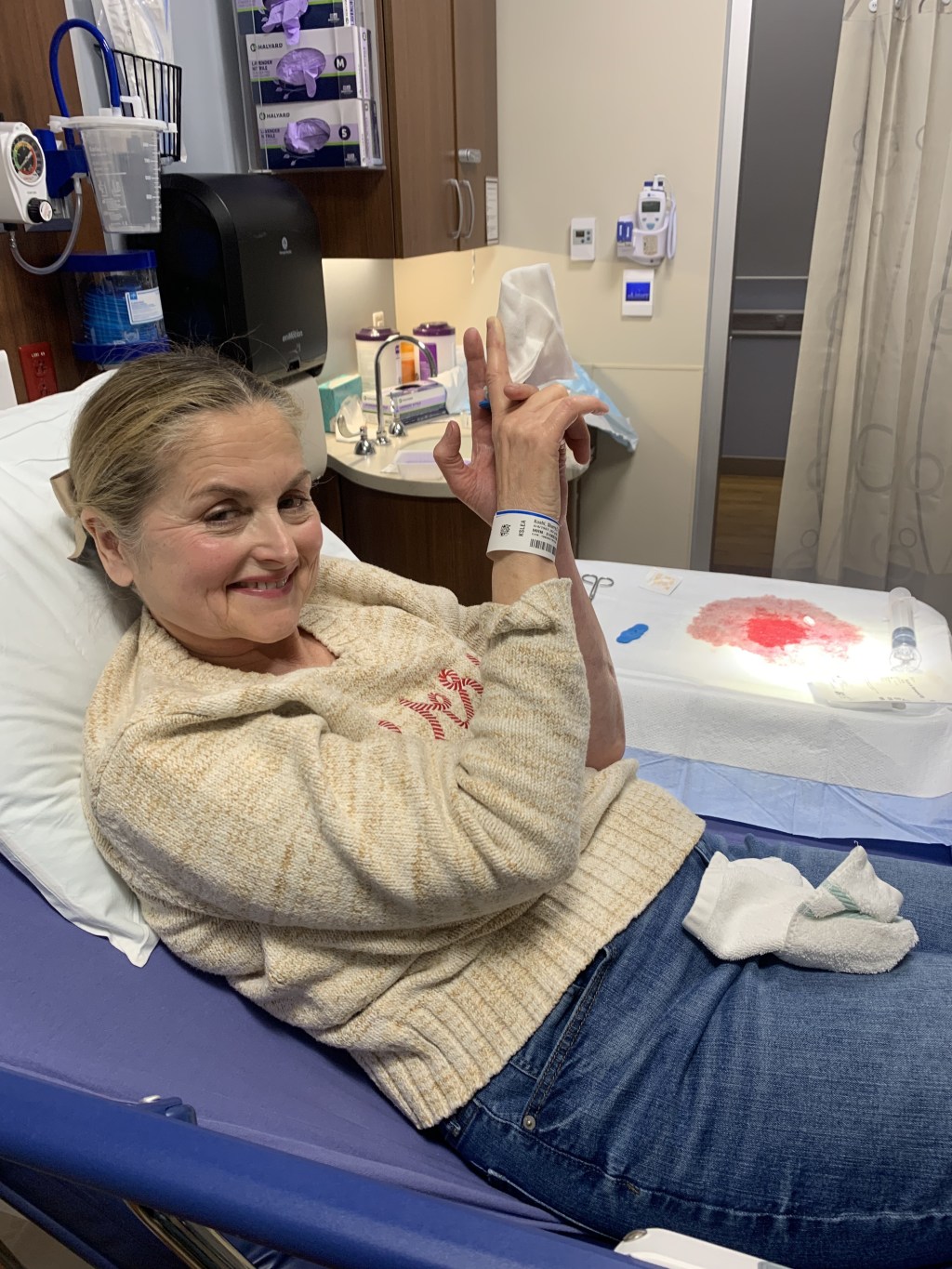 Shockingly I hit every single requirement. But I was still torn between needing the bleeding to stop and not wanting to go to the E.R. on Christmas. I mean talk about something that’s seriously un-festive. But my husband insisted so off we went with a beach towel as a tourniquet.